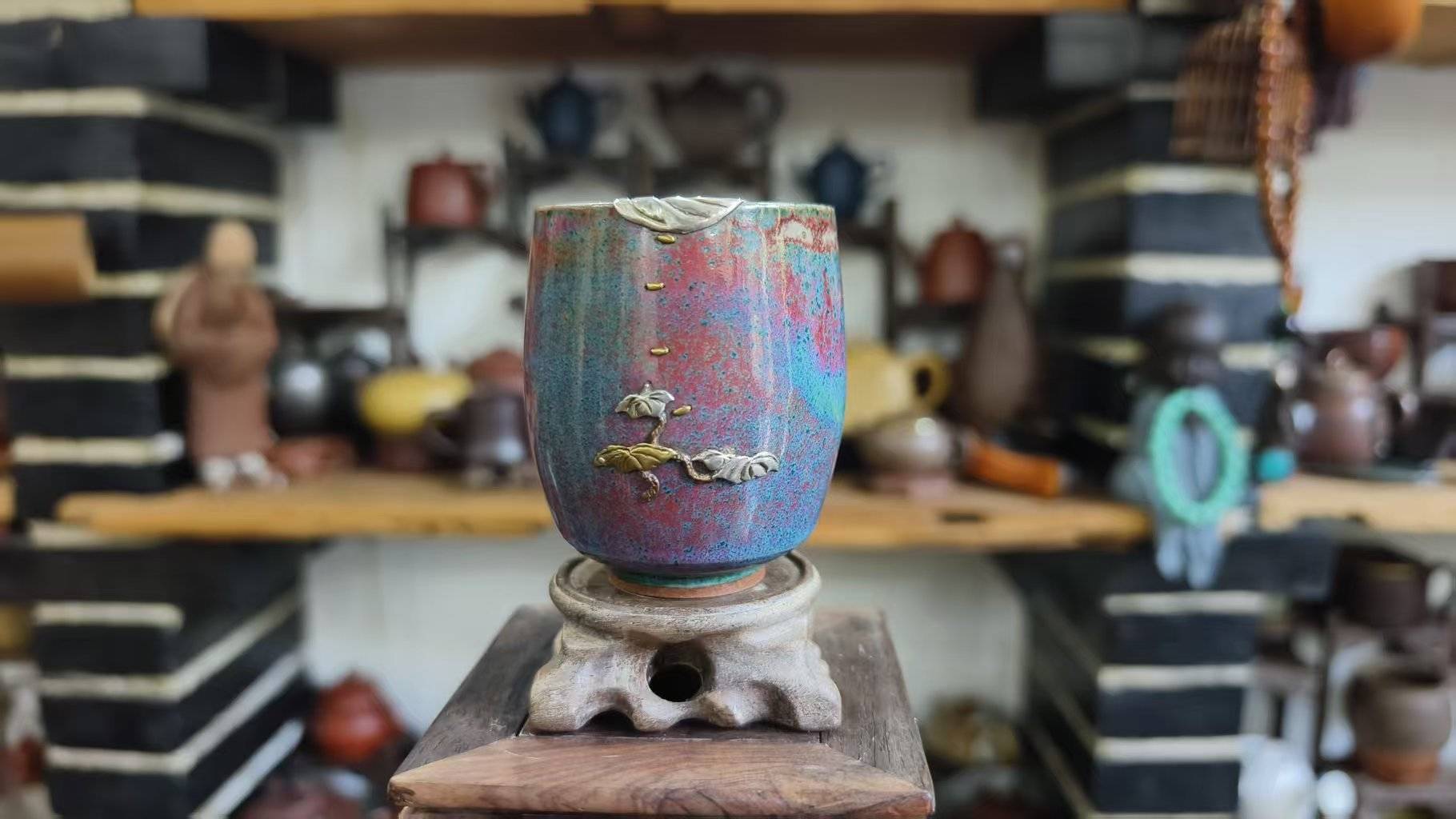 杨涛“装饰性锔瓷”作品。新华社发“锤下定乾坤”,在锔合居的外堂,几个大字格外醒目。不管技术如何更新,杨涛始终坚信手造的魅力。在他眼中,匠人用手中小锤将铜丝不断敲击制成的锔钉,无法被工业制造的标准化锔钉所替代。