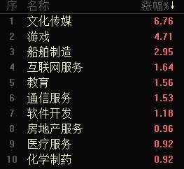 文化传媒板块领涨A股,读客文化、捷成股份、荣信文化、横店影视、上海电影、博纳影业、中国电影、光线传媒等多股涨停。分散染料概念反复活跃,海翔药业3连板,华尔泰触及涨停。PCB概念震荡拉升,南亚新材、宏和科技双双创历史新高。