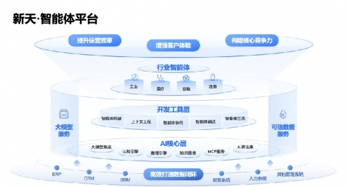“新天 智能体平台”基于先进的混合多智能体架构,融合了多模态大语言模型、高质量RAG检索增强生成、全程语境感知和智能记忆以及可视化AI编排等前沿技术,提供全栈式AI智能体开发服务。“新天 智能体平台”支持多种主流模型,可灵活调用多重MCP服务及各类算法工具,其多Agent协同能力,能将智能体间协同效率提升4倍,企业可按需组合模型与工具,构建功能全面、多元的智能体应用。