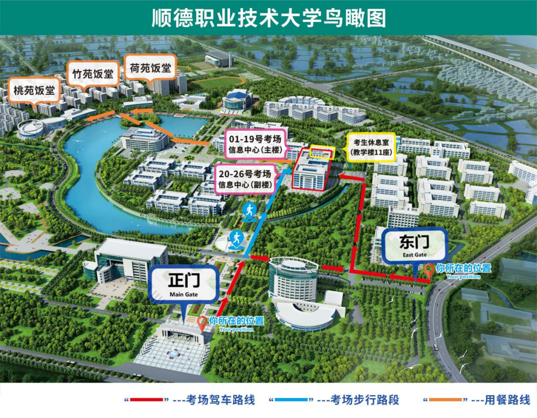 考点开放桃苑饭堂、竹苑饭堂、荷苑饭堂供考生用餐,考生可按指示牌指引前往用餐(步行需约10分钟;支持电子支付)。
