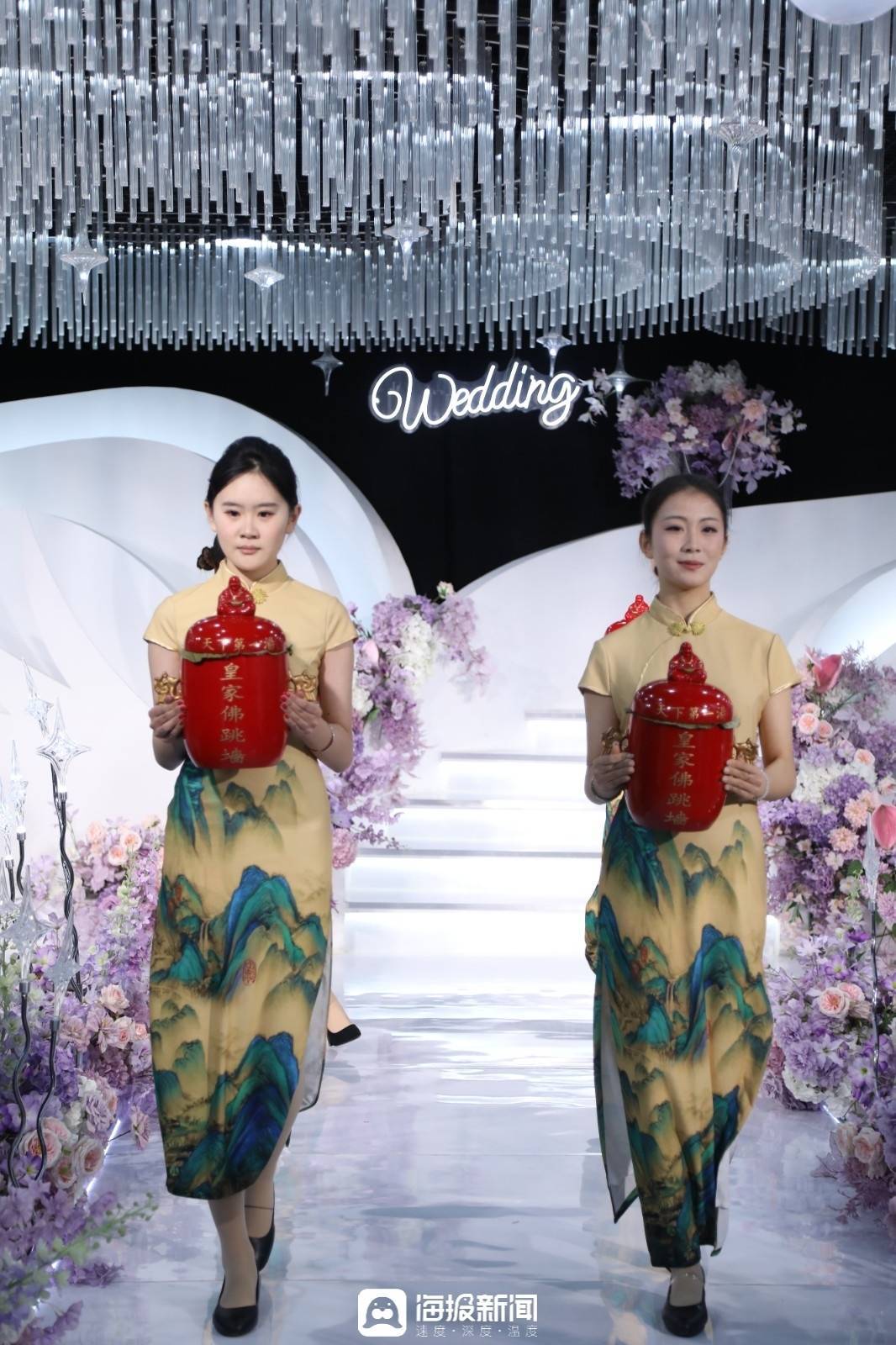 活动伊始,温馨的暖场互动环节点燃现场氛围,一曲灵动雅致的开场舞过后,发布会正式拉开帷幕,主持人带领现场嘉宾重温食为天二十三年的匠心成长之路。自2003年从仅有8张桌的湖鱼馆起步,历经二十三年深耕细作,逐步发展为集团化企业,累计服务4000余对新人,2014年率先打造日照市首家一站式婚礼中心,四次战略迭代升级,始终坚守初心、深耕礼宴领域。