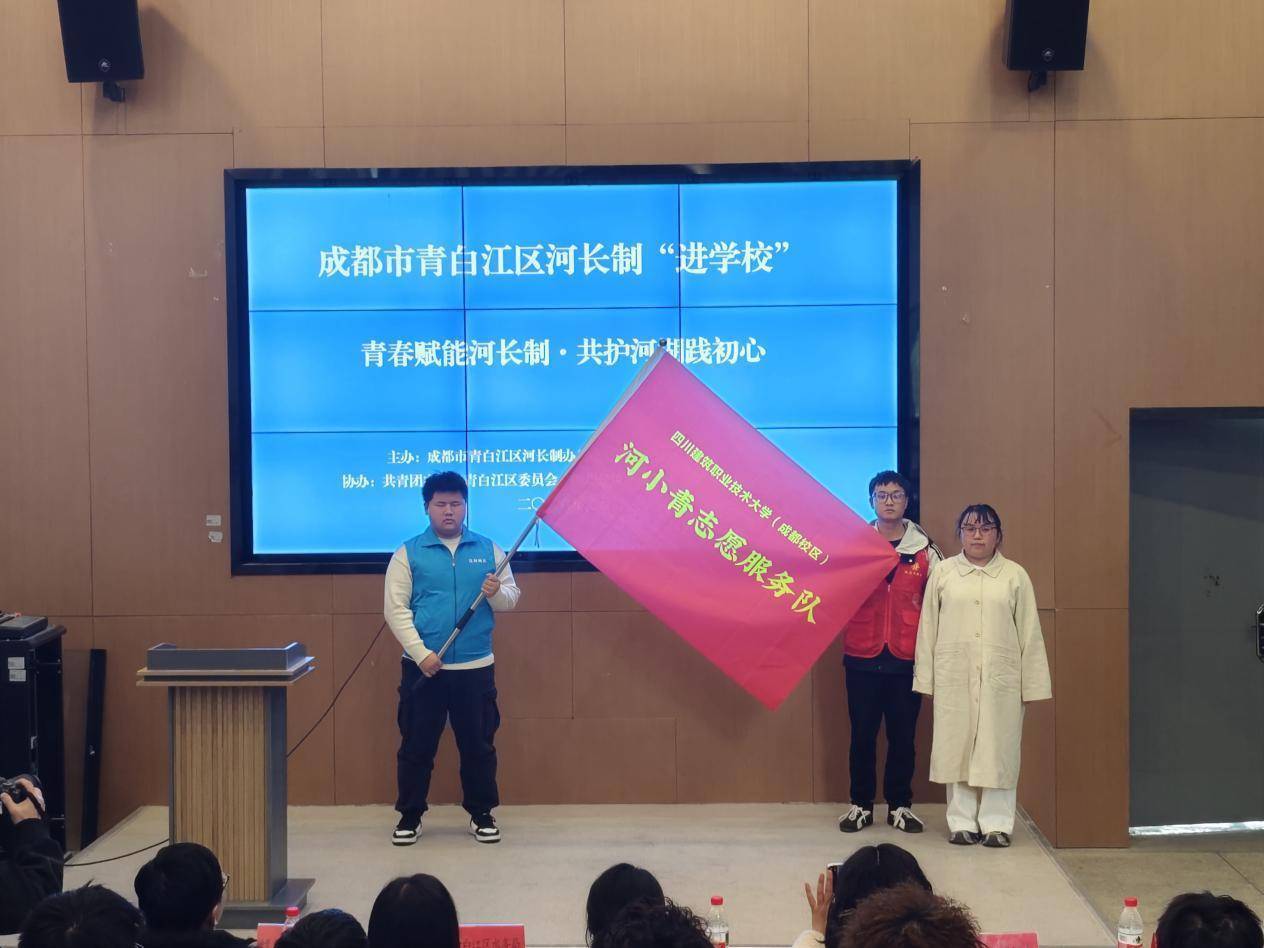 青春集结,河小青队伍注入新生力量。活动当天,共青团青白江区委邹伟鑫还为四川建筑职业技术大学河小青志愿服务队授旗,这支由铁道尖兵志愿服务队骨干力量组成的护河新军正式成立。优秀青年志愿者张冰健代表全体河小青发出护河倡议,号召青年学子“以青春之名,护河湖之美”。随后,全体志愿者在护河倡议横幅上郑重签名,将守护碧水的承诺刻于心间。