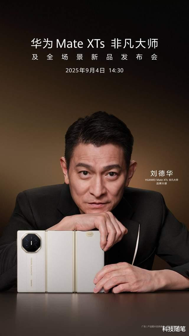 自8月27日官宣以来,华为终端持续释放重磅信息,为即将到来的华为Mate XTs 非凡大师及全场景新品发布会预热造势。9月1日下午,官方爆料再次掀起热潮:在今天的预热海报中,刘德华手持华为Mate XTs 非凡大师出镜。结合这次官宣的tittle“华为Mate XTs 非凡大师品牌大使”及预热文案“邀您共赴”来看配资炒股配资优秀,似乎暗示刘德华可能会亲临9月4日发布会现场。